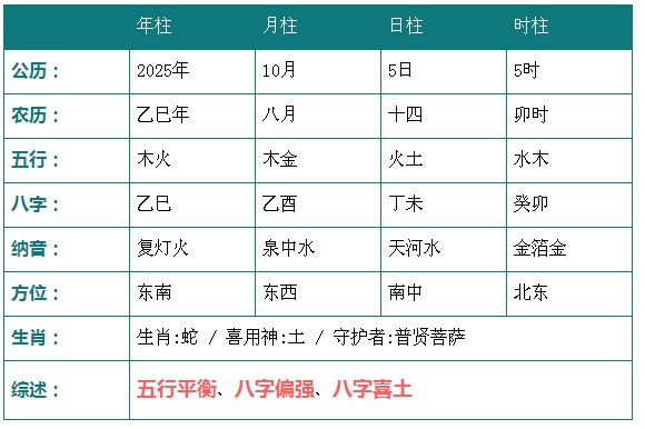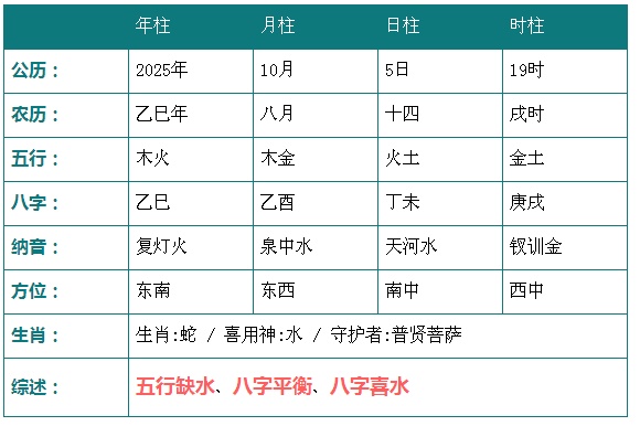 2025年10月5日出生的男孩女孩五行属什么缺什么