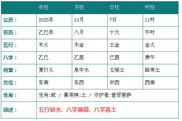 2025年10月7日出生的男孩女孩五行属什么缺什么