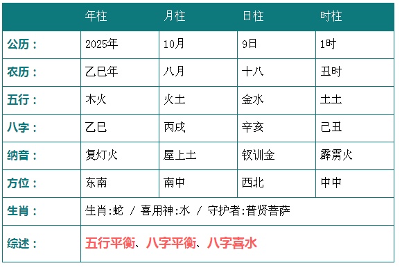 2025年10月9日出生的男孩女孩五行属什么缺什么