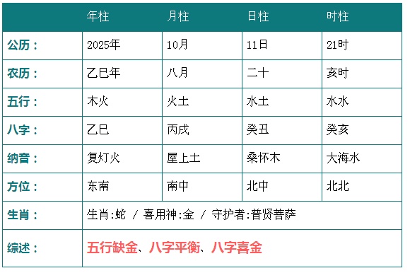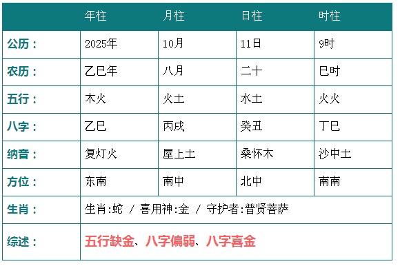 2025年10月11日出生的男孩女孩五行属什么缺什么