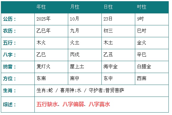 2025年10月23日出生的男孩女孩五行属什么缺什么