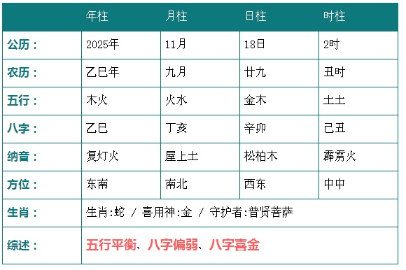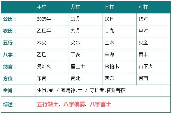 2025年11月18日出生的男孩女孩五行属什么缺什么
