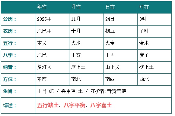 2025年11月24日出生的男孩女孩五行属什么缺什么