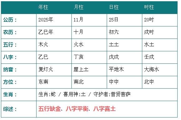 2025年11月25日出生的男孩女孩五行属什么缺什么