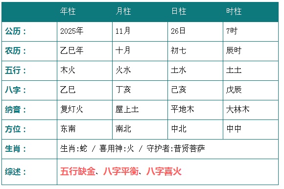 2025年11月26日出生的男孩女孩五行属什么缺什么