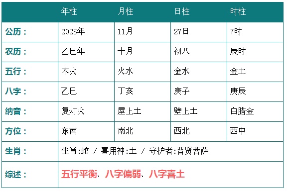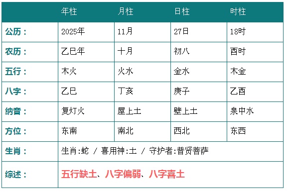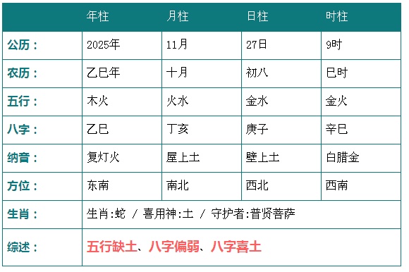 2025年11月27日出生的男孩女孩五行属什么缺什么