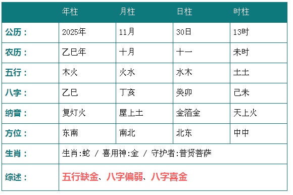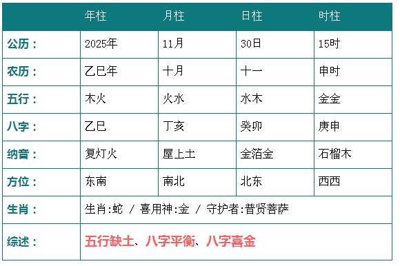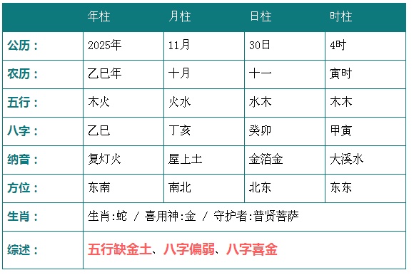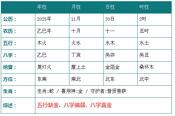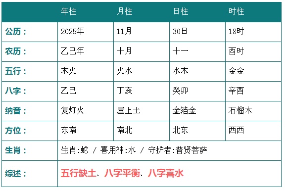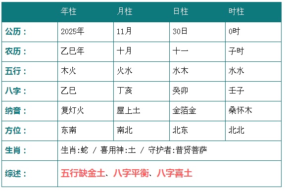 2025年11月30日出生的男孩女孩五行属什么缺什么