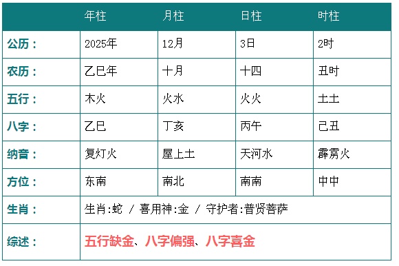 2025年12月3日3时八字五行分析: