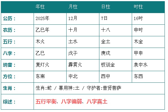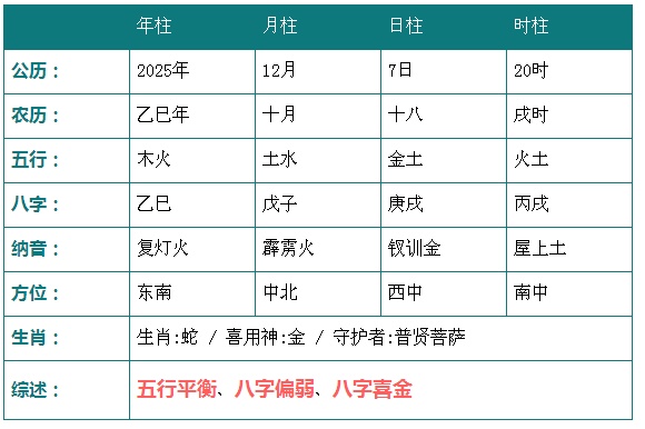 2025年12月7日出生的男孩女孩五行属什么缺什么
