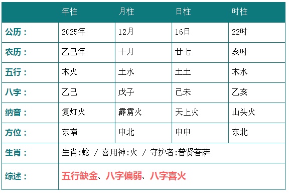 2025年12月16日出生的男孩女孩五行属什么缺什么